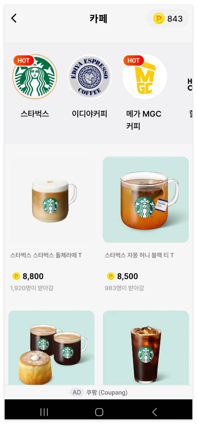 *포인트를 모아서 커피, 빵, 모바일 금액권, 햄버거, 현금까지 포인트로 전환할 수 있답니다!