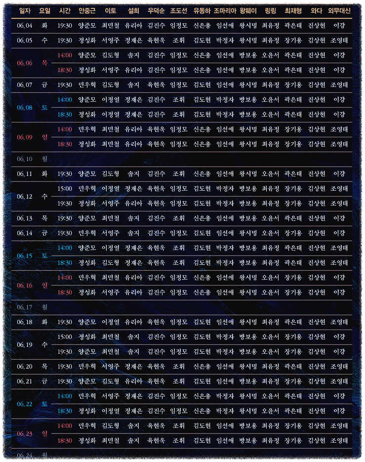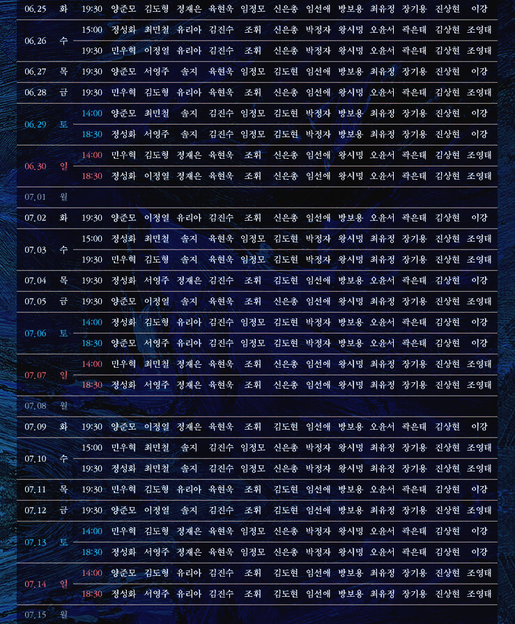 - 공연 기간: 7월 2일(화) ~ 7월 21일(일) 회차